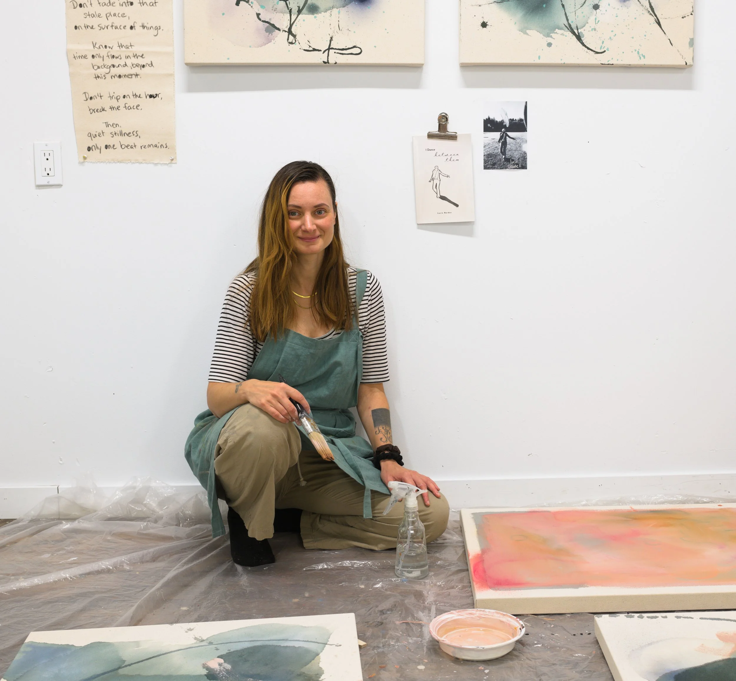 I now live in Lake Country, BC, on the territories of the Syilx Okanagan Nation, and the silvery green landscapes around me constantly inspire my work. I’m drawn to earthy colors, layered textures, and finding the balance between bold and gentle, capturing small moments in time that feel fleeting and special. The joy and mindfulness that come with creating are at the heart of everything I do — it’s a feeling I try to experience as often as possible.